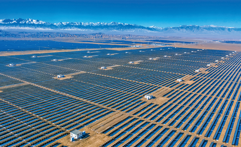 近年來(lái),甘肅深入實(shí)施強(qiáng)工業(yè)行動(dòng)、強(qiáng)科技行動(dòng),加快傳統(tǒng)產(chǎn)業(yè)改造升級(jí),培育壯大戰(zhàn)略性新興產(chǎn)業(yè)。圖為2024年10月17日,在位于祁連山下的高臺(tái)縣高崖子灘光伏產(chǎn)業(yè)園,橫豎成行的光伏支架和光伏發(fā)電板整齊地排列著,昔日戈壁灘,如今成為綠色能源“聚寶盆”。 甘肅日?qǐng)?bào)社供圖 盛學(xué)卿/攝