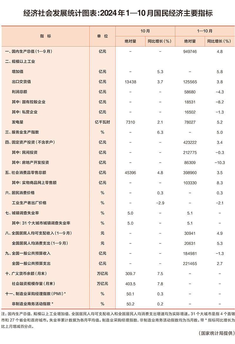 經(jīng)濟(jì)社會發(fā)展統(tǒng)計圖表:2024年1—10月國民經(jīng)濟(jì)主要指標(biāo)