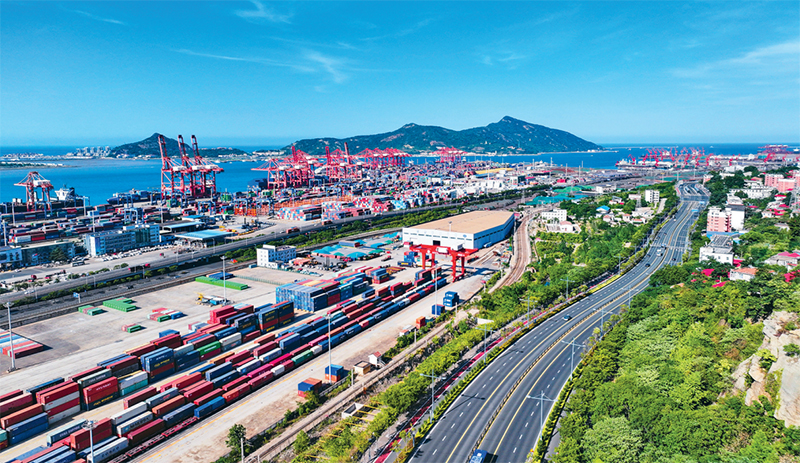 中哈連云港物流合作基地,是中國首個落地的“一帶一路”建設(shè)實體項目。經(jīng)過10年發(fā)展,中哈連云港物流合作基地已成為中亞五國過境運輸、倉儲物流、往來貿(mào)易的國際經(jīng)濟(jì)平臺。圖為2024年6月26日拍攝的中哈連云港物流合作基地。 新華社記者 季春鵬/攝