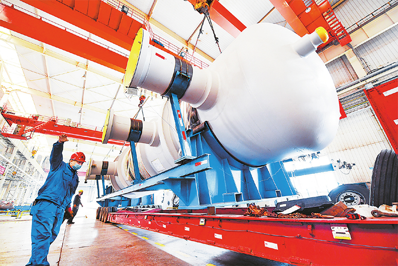 近年來(lái),甘肅省深度融入“一帶一路”建設(shè),積極發(fā)揮承東啟西、聯(lián)南通北的區(qū)位優(yōu)勢(shì),不斷提升對(duì)外開(kāi)放水平,在互利共贏中繪就高質(zhì)量發(fā)展的新篇章。圖為蘭石集團(tuán)重裝煉化公司承制的用于俄羅斯阿穆?tīng)柼烊粴饧庸ぬ幚韽S項(xiàng)目的40臺(tái)儲(chǔ)罐有序裝車發(fā)運(yùn)。?甘肅省委宣傳部供圖 丁凱/攝