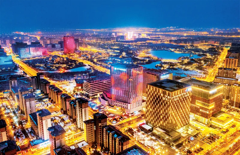 十年來(lái),京津冀打破“一畝三分地”思維定式,一張圖規(guī)劃、一盤(pán)棋建設(shè)、一體化發(fā)展,一幅相互融合、協(xié)同發(fā)展的壯美畫(huà)卷正徐徐展開(kāi)。圖為2024年2月7日,雄安新區(qū)容東片區(qū)夜晚景象。雄安新區(qū)宣傳網(wǎng)信局供圖 李達(dá)/攝