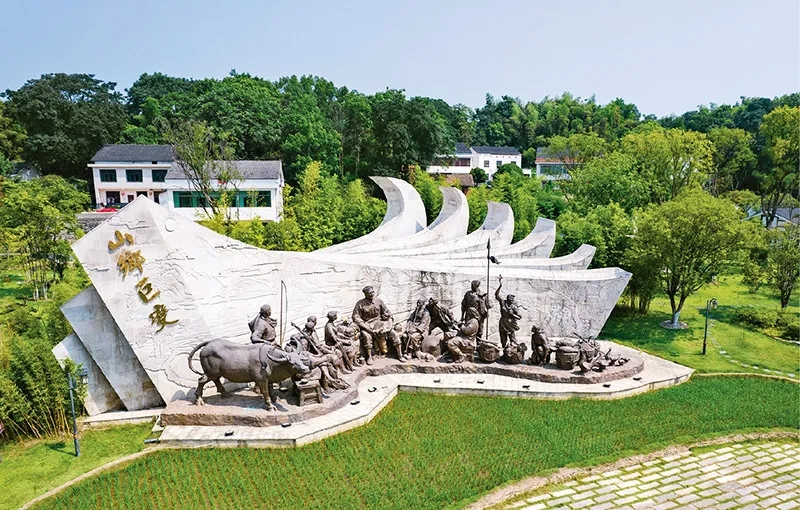 1955年秋,47歲的周立波整理行裝,從北京一路南下,舉家搬回老家湖南益陽清溪村。67年后,在這里,中國作家協會啟動了“新時代山鄉(xiāng)巨變創(chuàng)作計劃”和“新時代文學攀登計劃”兩項重大文學行動。圖為2022年8月1日拍攝的湖南省益陽市清溪村清溪廣場。新華社記者 陳思汗/攝
