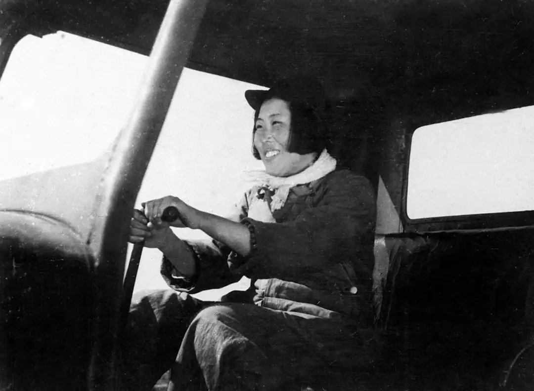梁軍在駕駛拖拉機(jī)(1950年攝)